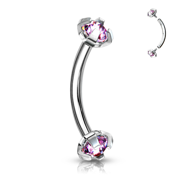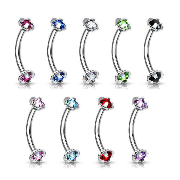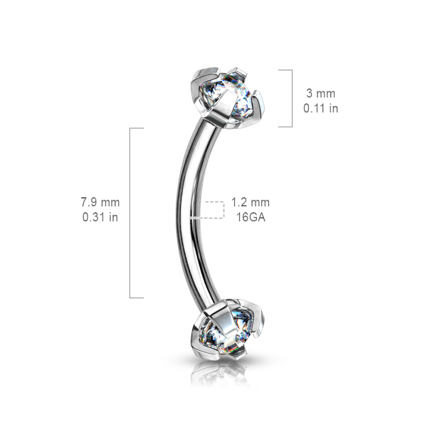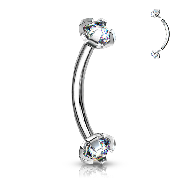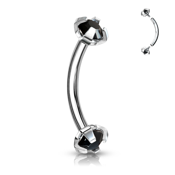 Микробанан с внутренней резьбой из хирургической стали 316L со стразами.