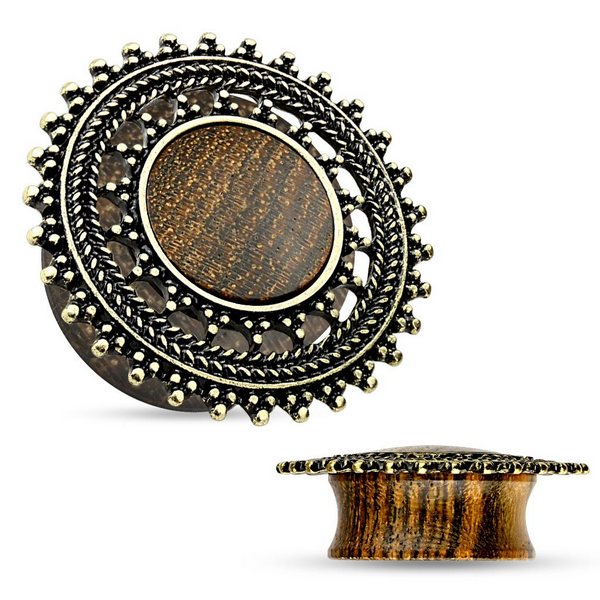 Плаги из палисандра, украшенные латунной окантовкой.