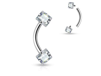 Микробанан из хирургической стали 316L с внутренней резьбой. Украшен квадратными стразами.
