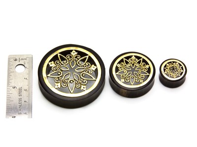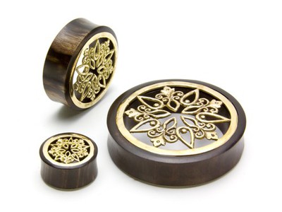 Плаги из падука, украшенные изящной вставкой из латуни.