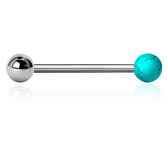 Штанга из хирургической стали 316L с шариком из искусственной бирюзы.