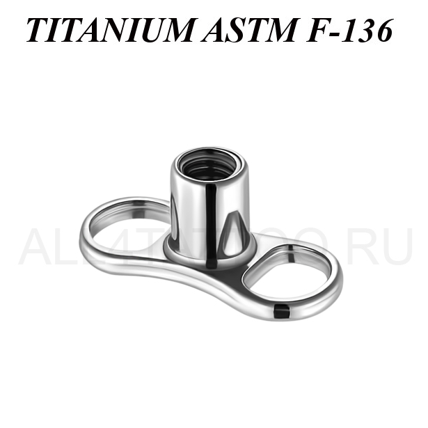 Мини якорь для микродермала из имплантационного титана ASTМ F-136 с двумя отверстиями. Толщина стойки микродермала 1.6мм, под накрутки с толщиной резьбы 1.2мм.