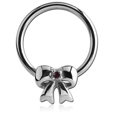 Кольцо из хирургической стали 316L с подвеской в виде бантика со стразом.