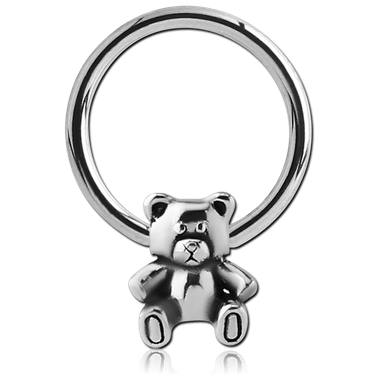Кольцо из хирургической стали 316L с подвеской в виде мишки.
