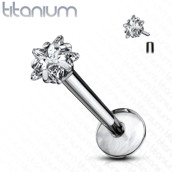 Лабрет из имплантационного титана 6Al-4V-Eli ASTM: F-136 с внутренней резьбой. Украшен кристаллом в форме звезды.