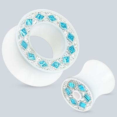 Тоннели из белого акрила с переливчатыми ларузными вставками на серебристом фоне.