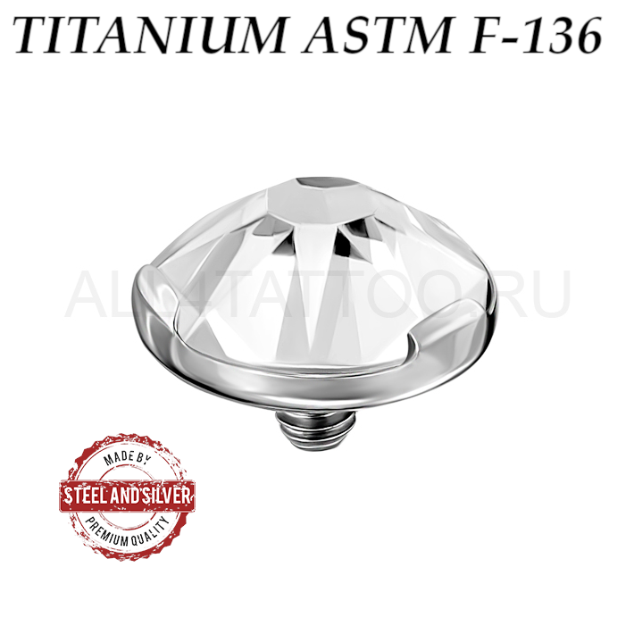 Накрутка из имплантационного титана ASTM F-136. Украшена кристаллом Swarovski. Резьба накруток 1,2мм подходит к микродермалам и украшениям толщиной 1,6мм с внутренней резьбой. За счет того что кристалл не в обкатке, а в закрепе из трех маленьких лапок - накрутка выглядит значительно ярче.