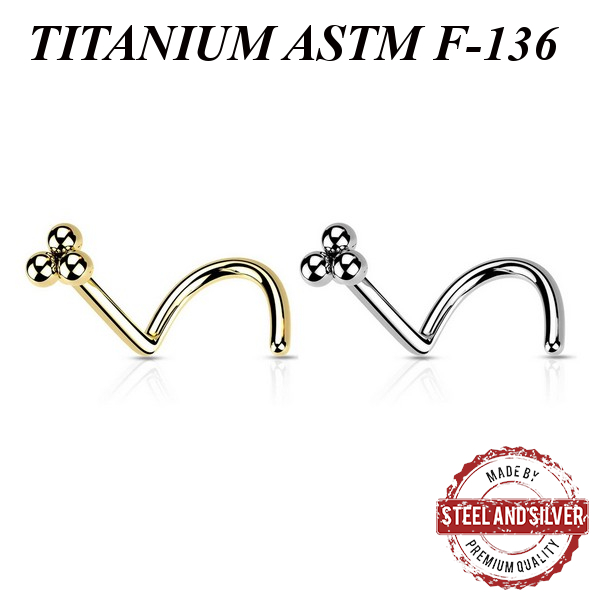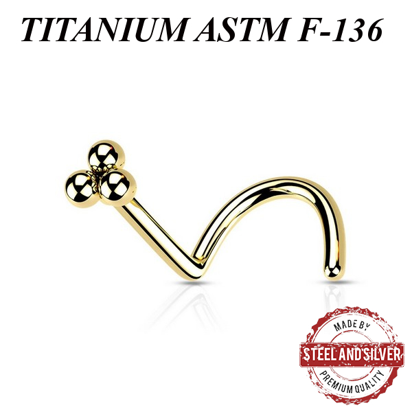 Нострил из имплантационного титана ASTM F-136. Представлен в двух вариантах: классический титановый и с 24х каратным золотым PVD покрытием. Размер декоративной части - 3мм.