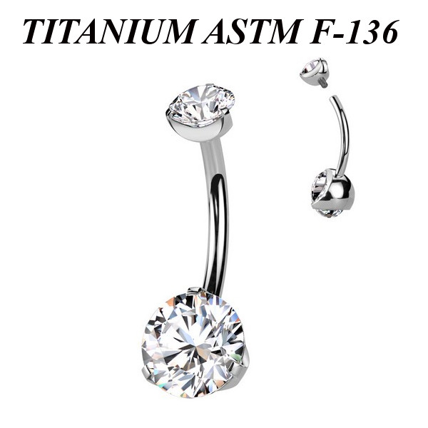 Банан из имплантационного титана 6Al-4V-Eli ASTM: F-136 с внутренней резьбой. Украшен яркими кристаллами 5 и 8мм.