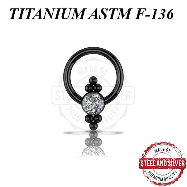 Кольцо из имплантационного титана 6Al-4V-Eli ASTM: F-136 с черным PVD покрытием. Украшено кластером с Premium Zirconia.