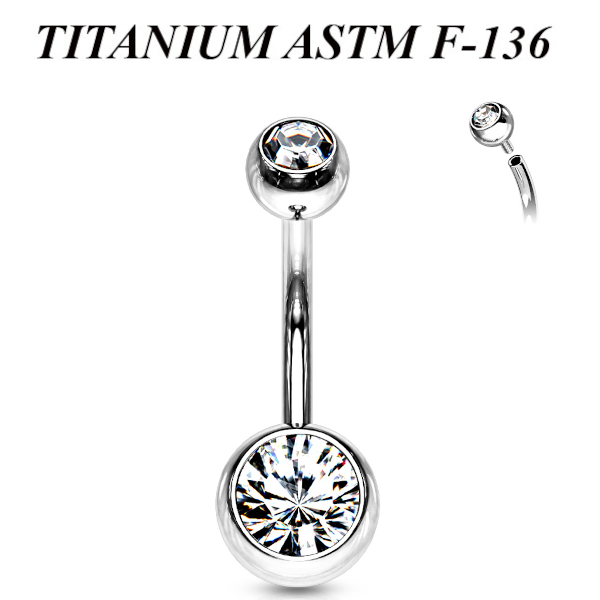 Банан из имплантационного титана 6Al-4V-Eli ASTM: F-136 с внутренней резьбой. Украшен яркими фианитами. Диаметр нижнего шарика - 8мм, верхнего - 5мм.