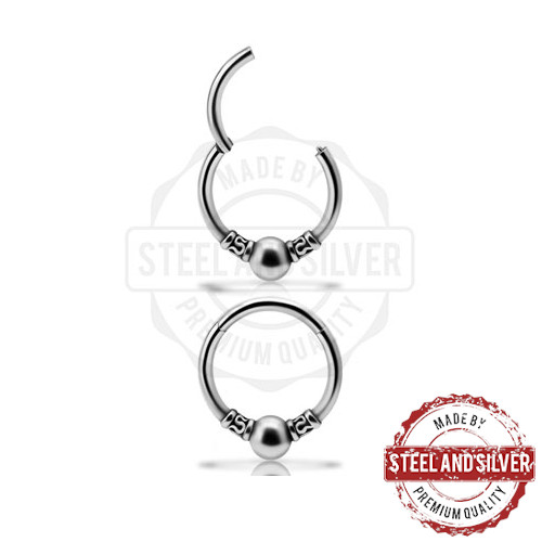 Кликер из хирургической стали 316L с шариком диаметром 4мм. Дополнен античным узором.