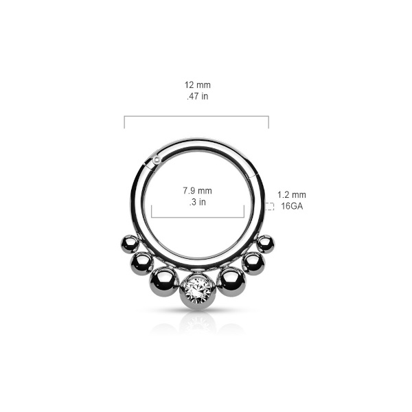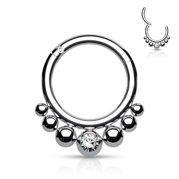 Кликер из хирургической стали 316L, украшен декоративными шариками и кристаллом.