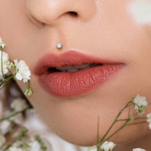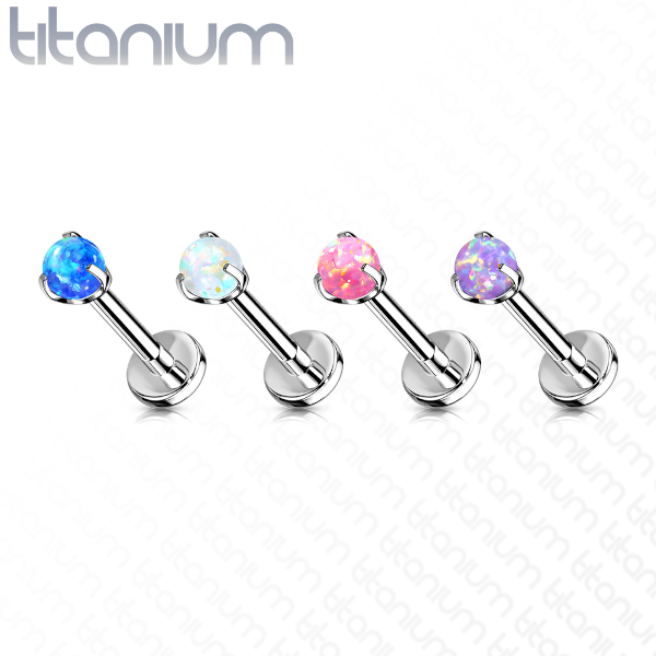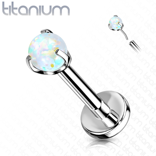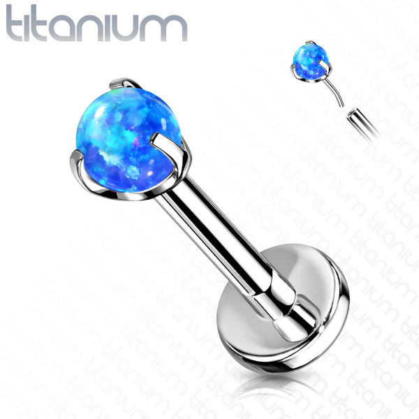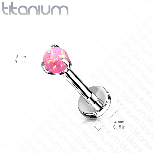 Безрезьбовой лабрет из имплантационного титана 6Al-4V-Eli ASTM: F-136. Украшен шариком из лабораторного опала диаметром 3мм.