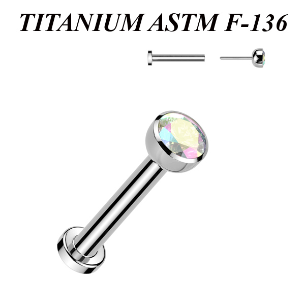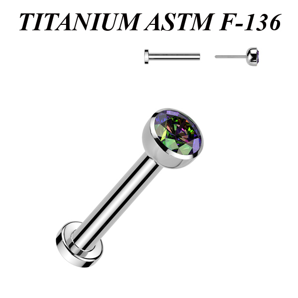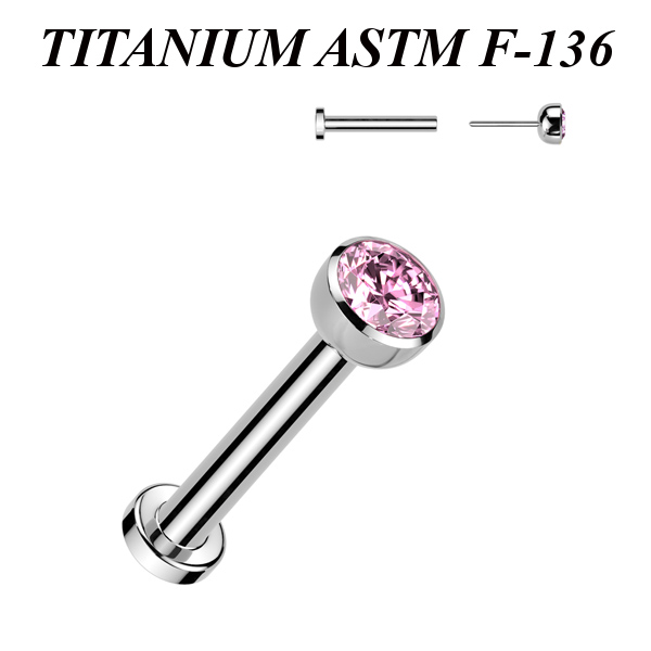Безрезьбовой лабрет из имплантационного титана 6Al-4V-Eli ASTM: F-136. Украшен вставкой с фианитом.
