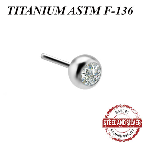 Вставка из имплантационного титана 6Al-4V-Eli ASTM: F-136 для безрезьбовых украшений. Украшена Premium Zirconia.