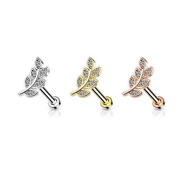 Лабрет с внутренней резьбой из хирургической стали 316L и накрутки из латуни с родированием. Украшен стразами. Размер декоративной части - 5х9,3мм. Представлена также вариация с золотым IP покрытием.