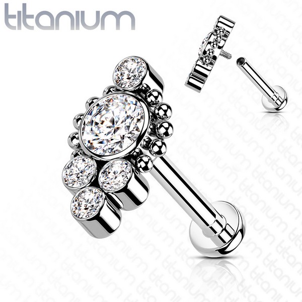Лабрет из имплантационного титана 6Al-4V-Eli ASTM: F-136 с внутренней резьбой. Размер кластера - 6х9,5мм.