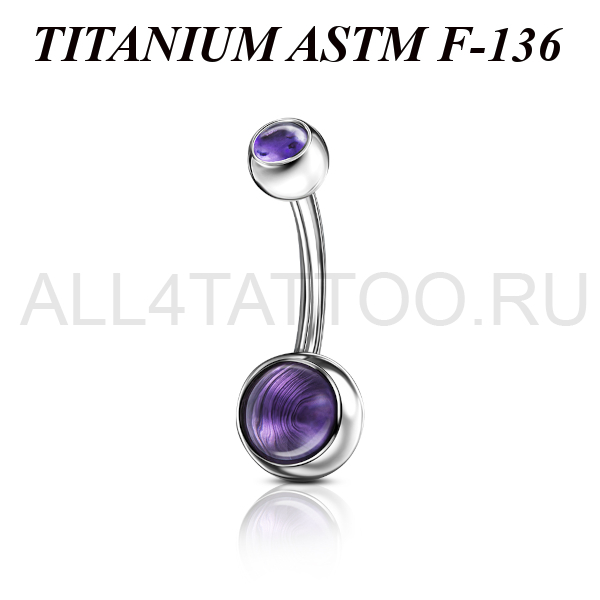 Банан из имплантационного титана 6Al-4V-Eli ASTM: F-136 с внутренней резьбой. Украшен кабошоном из аметиста.