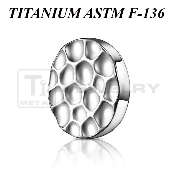 Накрутка из имплантационного титана 6Al-4V-Eli ASTM: F-136 в форме диска с рельефными лунками. Подходит для украшений с внутренней резьбой.