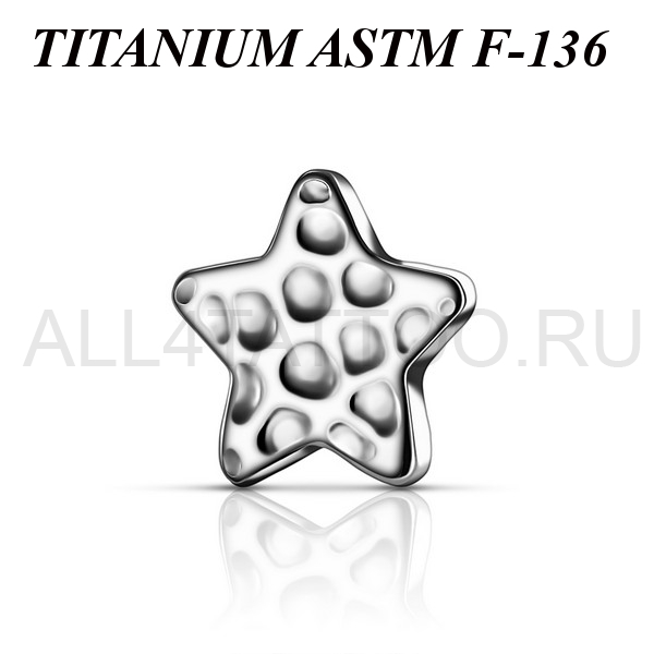 Накрутка из имплантационного титана 6Al-4V-Eli ASTM: F-136 в форме звезды с рельефными лунками. Подходит для украшений с внутренней резьбой.