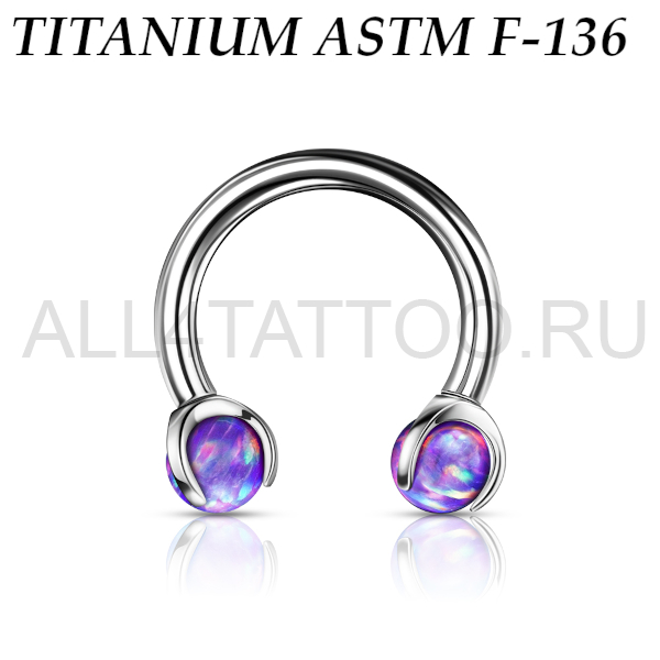 Циркуляр из имплантационного титана 6Al-4V-Eli ASTM: F-136 с внутренней резьбой. Украшен шариками из лабораторного опала.