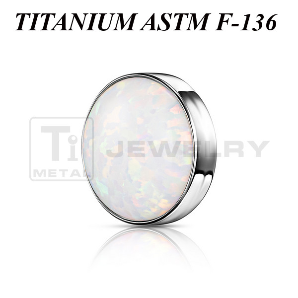 Накрутка из имплантационного титана 6Al-4V-Eli ASTM: F-136. Украшена лабораторным опалом. Подходит для украшений с внутренней резьбой.