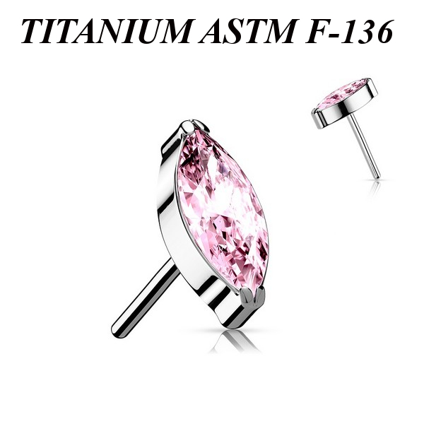 Вставка из имплантационного титана 6Al-4V-Eli ASTM: F-136 для безрезьбовых украшений с фианитом огранки "маркиз".