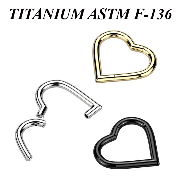 Кликер из имплантационного титана 6Al-4V-Eli ASTM: F-136 в форме сердца. Представлен в трёх варинтах: классический титановый, с чёрным и золотым PVD покрытием.