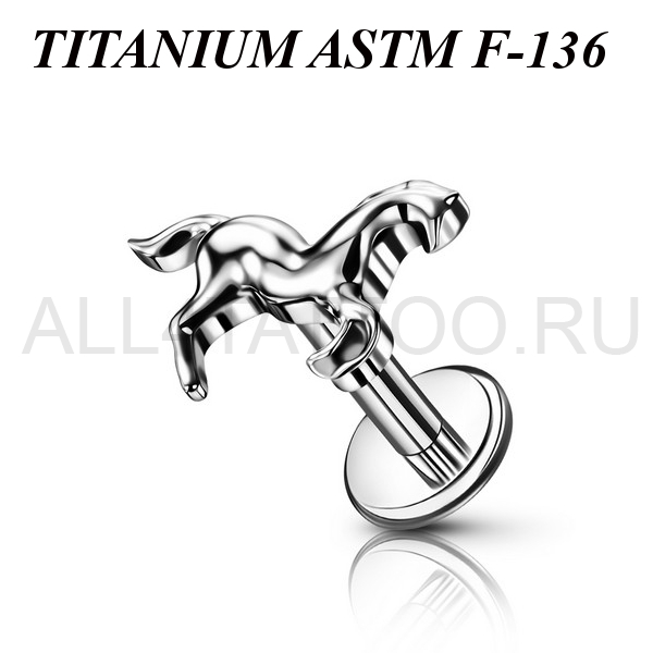 Лабрет с внутренней резьбой из имплантационного титана 6Al-4V-Eli ASTM: F-136 с фигурной накруткой. Размер накрутки: 8х5мм.