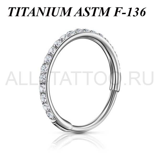 Кликер из имплантационного титана 6Al-4V-Eli ASTM: F-136 украшен сетом прозрачных фианитов. В таблице указана толщина погружной части кликера.