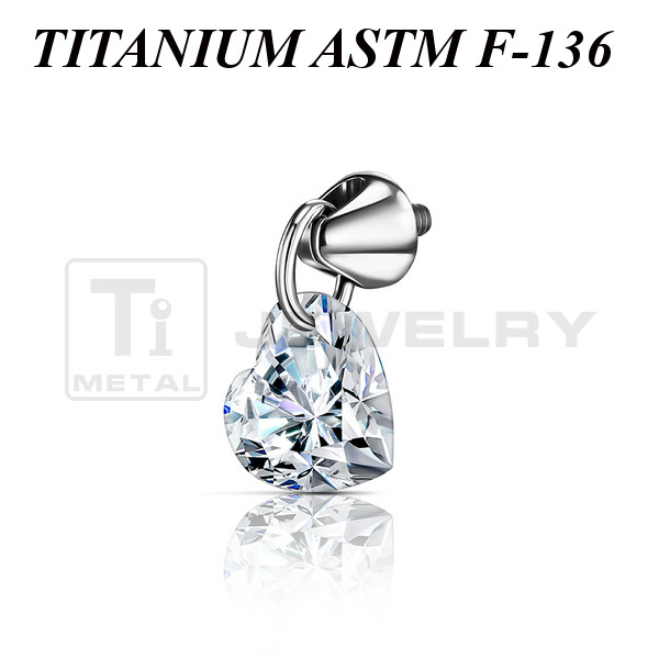 Накрутка из имплантационного титана 6Al-4V-Eli ASTM: F-136 в виде пики с подвеской из фианита в форме сердца. Размер пики: 3х3мм, размер подвески: 5х5мм.