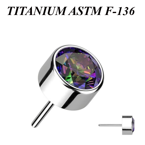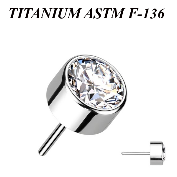 Вставка из имплантационного титана 6Al-4V-Eli ASTM: F-136 для безрезьбовых украшений. Украшена фианитом.
