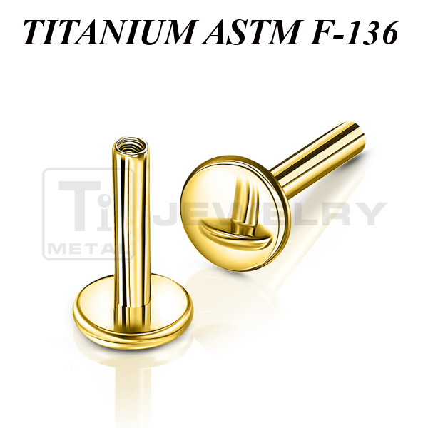 Основа для лабрета с внутренней резьбой из имплантационного титана 6Al-4V-Eli ASTM: F-136 с золотым PVD покрытием.