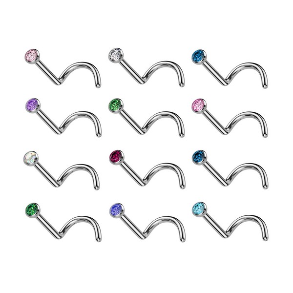 Нострил из хирургической стали 316L украшен фианитом диаметром 2мм.