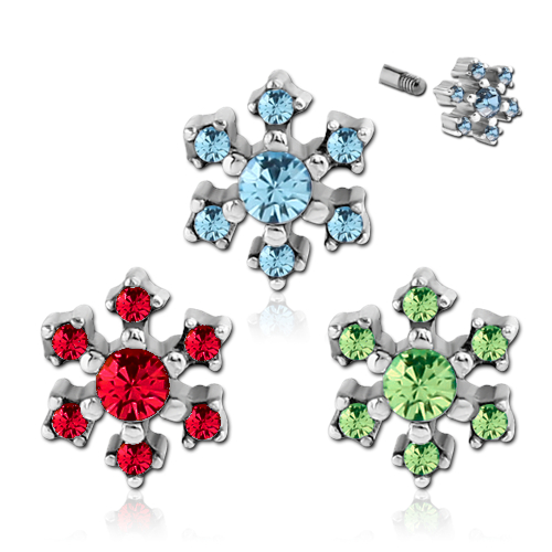 Накрутка из хирургической стали 316L с кристаллами. Размер накрутки 6,7х6,7мм. Подходит для украшений толщиной 1,2мм с внешней резьбой.