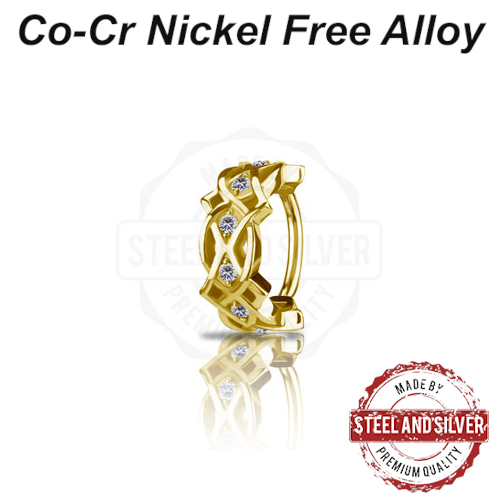 Кликер из сплава кобальт-хрома, без содержания никеля. Украшен Premium Zirconia. Представлен так же вариант с 18-ти каратным PVD покрытием.